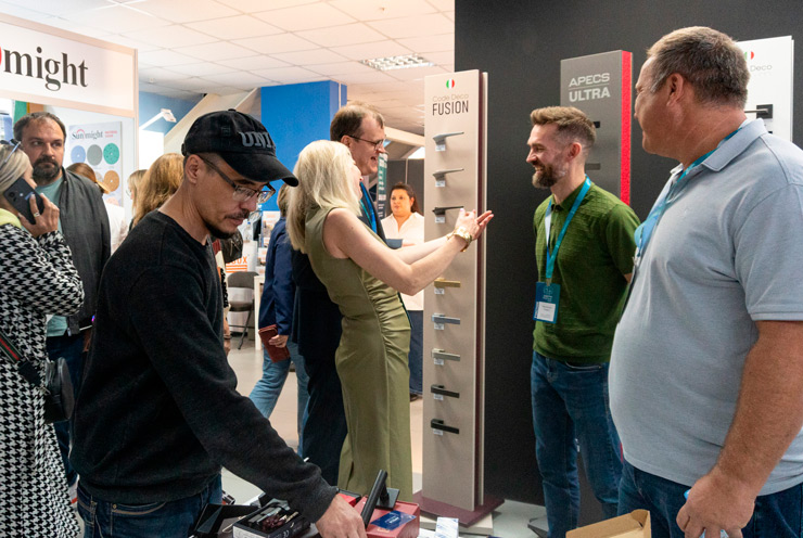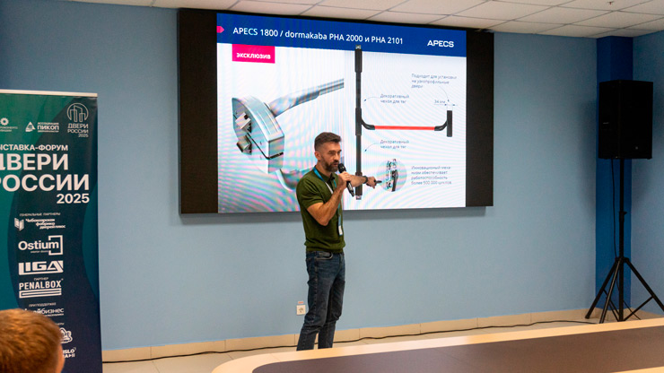 Команда «Apecs Security» выступила также в качестве спикеров, обсуждая с коллегами новые продукты, тенденции рынка дверей и фурнитуры, делилась прогнозами. Мы организовали живые мастер классы по установке электронных замков «Apecs», а также раздельных ручек и фурнитуры серий «Loft» и « Fusion» совместно с экспертом монтажной отрасли – Дмитрием Пружанским.
