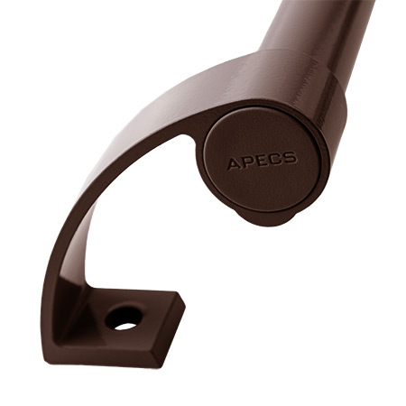 Конструкция кронштейнов и размер угла позволяют удобно использовать данную модель ручки-скобы в паре с замком Apecs серий 73R или 70R.